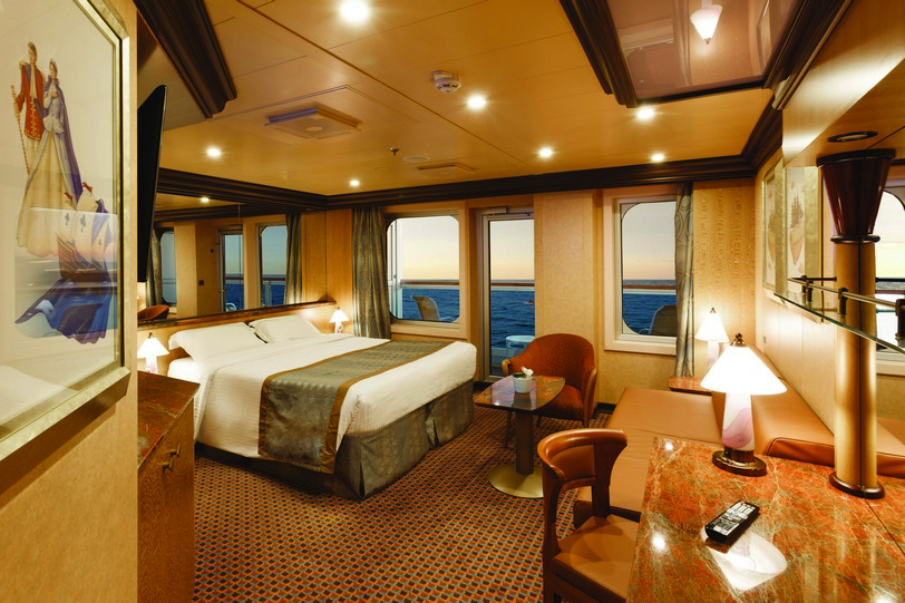 Сьют – это не только повышенный комфорт и дополнительное пространство, это исключительные преимущества на корабле. Пассажирам предоставляют один день в спа-центре, включенный в стоимость, индивидуальное обслуживание каюты дворецким, отдельный ресторан и приоритетные места на всех мероприятиях на лайнере. Количество сьютов на борту ограничено. И, несмотря на высокую стоимость, их разбирают быстрее всего.