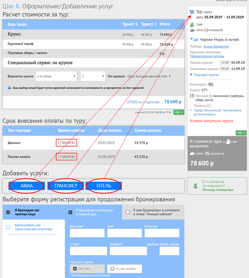 Обращаю внимание агентов на то, что режим работы в реальном времени позволяет отражать все актуальные данные круиза и авиаперелетов – а это значит, что цена бронирования не поменяется, никаких доплат не потребуется. Главное – вовремя оплатить!